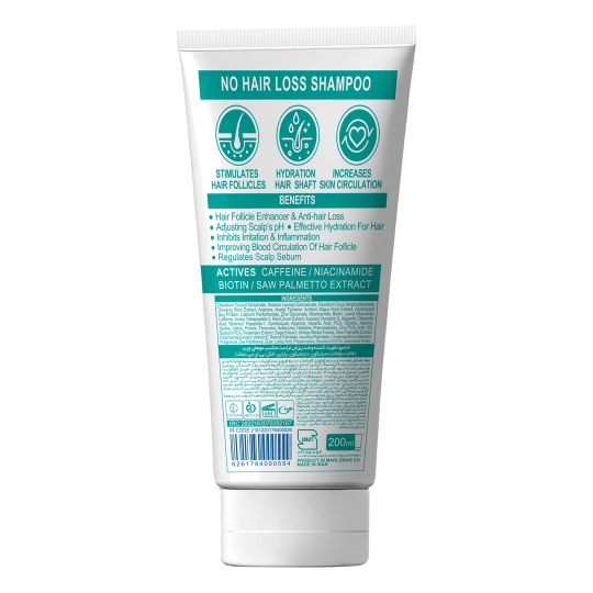ویژگیها : تأثير عالي در كنترل و درمان انواع ريزش مو اقزايش گردش خون پوست سر و تقويت رشد مو ترميم و تقويت فوليكولهای مو و استحكام تار مو تنظيم چربي مو و پوست كف سر فاقد سولفات، سیلیکون، دایمتیکون، پارابن، الکل، پی ای جی و نمک حجم : ۲۰۰ میل
