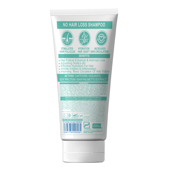 ویژگیها : تأثير عالي در كنترل و درمان انواع ريزش مو افزايش گردش خون پوست سر و تقويت رشد مو ترميم و تقويت فوليكولهای مو و استحكام تار مو آبرسان و حالتدهنده مو فاقد سولفات، سیلیکون، دایمتیکون، پارابن، الکل، پی ای جی و نمک حجم : ۲۰۰ میل